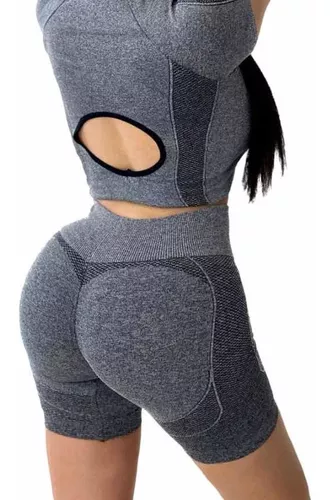 Conjunto Deportivo Biker Short Push Up Color Gris