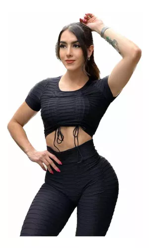 Conjunto Deportivo Texturizado Color Negro Con Push Up
