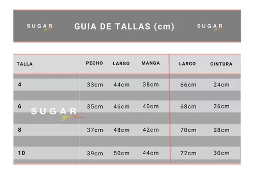 | Talla | 4, 6, 8, 10 |