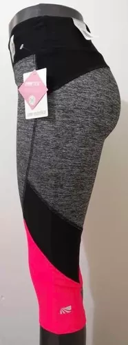 Licra o maya deportiva marca original Marika excelente calidad en Licra fina al tacto gris con destellos blancos y Licra en tono naranja fluorescente en la parte posterior al final de las piernas ventanales en tono negro laterales
