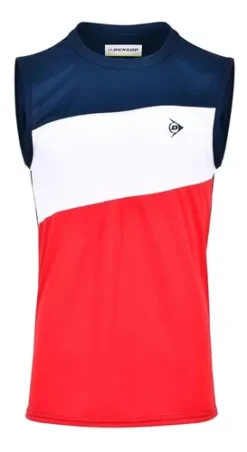 Playera deportiva Dunlop. Sin mangas cuello redondo. Diseñada con tela fresca, suave y ligera. Para un mejor movimiento. 100% poliéster. Hecho en México.