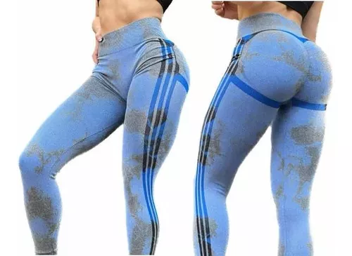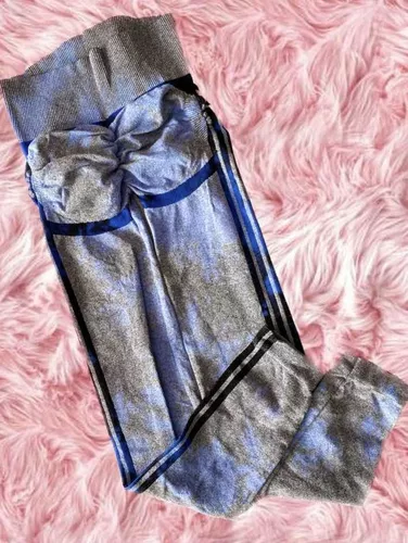 Legging deportivo color azul marino con gris, tela gruesa.