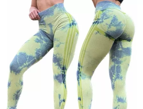 Legging deportivo color amarillo con manchas tie dye color gris.